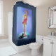An attractive young blonde that has just come out of the shower, and that is barely covered with a pink towel and wearing pink high heel slippers; is standing on a large scale as she looks at the viewer in disbelief at the reading.