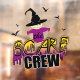 'The Scare Crew'. This design works well for either a children or adults. Bold typography has a gold and purple colour palette. Search ID1002 to see other products with this scary Halloween design.