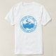 The sea is not real. This funny conspiracy theory is about sea being fake and surfers being government spies. The design is in blue colour with a surfer surfing on the ocean waves.