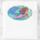 Original watercolor painting by Sandra Gale of a fantasy mermaid holding a glowing ball. This under Sea design makes a beautiful wearable piece of art. The pale colours in a sea foam green underwater scene looks uniquely beautiful.
