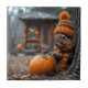 This solitary squirrel is having a secret nut feast during the forest fall season, a small, orange pumpkin with its top cut open, reveals yet more nuts inside. The ground is covered with fallen leaves and debris. This simple scene evokes a warm, cosy, and whimsical autumn atmosphere.