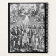 The Seven Archangels, their names inscribed in their haloes, are depicted with their attributes.  Reading from left to right, the Archangels are as follows:  St. Raphael (“God Heals”) bears an apothecary’s jar and holds the hand of the youth Tobias who carries a fish.  With a salve made from fish guts, St. Raphael healed Tobias’s father of blindness and his future wife from possession by a demon.  Uriel (or Ariel; “God Is My Light”) wields a sword.  He may have expelled Adam and Eve from the Garden of Eden after The Fall.  A flame burns at his feet.  St. Gabriel (“Strength of God”) is usually portrayed with a spray of lilies.  Here, however, he carries a lantern that bounces light off a mirror of jasper.  The lantern symbolises the Word of God; and, the mirror of jasper--a mineral with occlusions that nevertheless takes on a reflective sheen when polished—symbolises our flawed understanding of God’s nature.  In the centre, a tall, armour-clad St. Michael (“Who Is Like God?”) carries a battle standard and palm of victory.  He crushes Lucifer in the guise of a dragon underfoot.  Sealtiel (“Prayer for God”), here with eyes raised, folds his hands in prayer in front of his chest.  Jehudiel (“God’s Justice”) carries a crown and a scourge (the heavenly equivalent of a carrot and a stick).  And, finally, Barachiel (“God’s Blessings”) holds out a fold of his mantle filled with flowers for strewing or dispensing. +  The engraving was inspired by two Biblical passages--Apoc. 1:4 and Psalm 137:1-2--that appear in Latin beneath the image on the original print (not visible here).   +  Joint Feast of SS. Michael, Gabriel, and Raphael:  September 29   + Image Credit (M 034):  Antique Flemish Northern Renaissance engraving of St. Michael and Archangels (The Seven Archangels), by Hieronymus [Jerome] Wierx, originally published with privilege by Piermans, Antwerp, Belgium, c. 1600, from The Metropolitan Museum of Art, The Elisha Whittelsey Collection, The Elisha Whittelsey Fund, 1951, 51.501.6402.  Creative Commons CC0 1.0 Universal Public Domain Dedication.