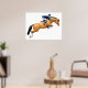 Original fine art design of a bay show jumping horse and rider by designer Carolyn McFann of Two Purring Cats Studio on a quality poster print for horse fans and equestrians.