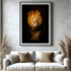 The lion’s piercing gaze radiates respect and power. Emerging from the darkness, his imposing presence symbolises courage, leadership, and the untamed majesty of the wild.