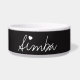 Customised name bowls for pets is created in a 'white chalk on black board' style. There is a white heart placed over the 'i'. If your pet's name does not have an 'i' in the spelling, this heart image can be removed or simply enlarged and placed elsewhere on the mug.