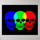 A three skulls design in primary colours a fun and trippy twist on the basic skull design. .