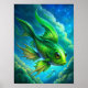 In the image, a vibrant green fish gracefully swims through a bright blue sky, defying the laws of nature. The fish’s scales shimmer in the sunlight, reflecting shades of emerald and lime. Its fins are spread wide, creating a sense of motion and elegance as it glides through the air. Fluffy white clouds drift in the background, enhancing the surreal atmosphere of the scene. The combination of the fish and the sky creates a whimsical and enchanting image, inviting viewers to imagine a world where anything is possible.