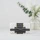 On the back side of the card, there is a blurred image, creating an effect of softness and gentleness. In the centre, there is a black insert for contact information. Along the edges of the card, there is a yellow ribbon with a bow, adding charm and elegance.