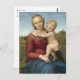 The Small Cowper Madonna (c. 1505) by Raphael is a Renaissance masterpiece that depicts the Virgin Mary tenderly holding the Christ Child in a serene landscape. The painting exemplifies Raphael’s signature style, chraacterised by soft modelling, harmonious composition, and delicate colour transitions. Mary, dressed in a red gown with a blue mantle, gazes gently at the viewer while the infant Jesus sits comfortably on her lap, symbolising maternal love and divine grace. The tranquil countryside in the background enhances the painting’s sense of peace and natural beauty, reflecting the influence of Leonardo da Vinci and Raphael’s deep devotion to religious themes.