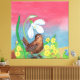The Eurasian wren is a brown pea-coloured singing bird. We recognise it by a tiny and thickset body with a raised tail. Although the smallest European bird with the shortest wings, it has a very strong voice. We can observe it in humid forests, gardens, hedgerows, near springs, streams and marshes. The snowdrop and the wren bird summon the spring Canvas. Snowdrop on early spring. Playful and colourful spring motif. Illustration about Spring Theme. Gift for nature and bird lover. Nursery decoration motif. Spring home decor. It's the time for new beginnings, optimism, new seasons, signs of spring, hope, courage, change. Snowdrop, primrose flowers and bird decorative design for Spring Easter.
