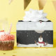 Mr. Snowman discovers the moon for the first time, and is in awe of it's beauty. Black skies with a tonne so stars. Snowman is wearing a red scarf, with red buttons up and down his tummy.