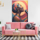 A breathtaking geometric abstract artwork of a woman singing as colorful sound waves flow from her voice. Perfect for adding rhythm, color, and artistic emotion to your modern home or studio.