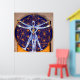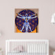The Vitruvian Man on the "Flower of Life"(the basic Electro-Magnetic structure of the universe).Original mural painted on the wall of the 100 year old church on the corner of Rose and Hampton in Venice, CA that has since been painted over. Named for the 1st century B.C. architect Vitruvius, author of an architectural treatise that inspire Leonardo Da Vinci, which included theories on the proportions of the human body in relation to the Golden Mean (1 to 1.618 or 1 to 0.618). This work is part of The Sacred Geometry Paintings (TM) Series which numbers over 1,000 canvases to date by the contemporary visionary artist David Alexander English. AVAILABLE now on your choice of 5 different kinds of paper or canvas from $19.95 on 11"x17" cardstock to $395 on 5ftx3ft canvas.
