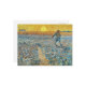 The Sower (1888) by Vincent van Gogh is a powerful Post-Impressionist painting that depicts a farmer sowing seeds in a vast field under a radiant yellow sky. The artwork reflects Van Gogh's admiration for rural labour and his fascination with the cycles of nature. The vivid colour palette of golden yellows, deep blues, and rich greens, along with the expressive brushstrokes, creates a dynamic and symbolic scene. The oversized sun dominates the sky, casting a spiritual glow over the figure and landscape, imbuing the scene with a sense of hope and renewal.