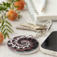 Custom designed fractal art spiral keychain.