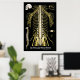 Great illustrations of the spine and spinal nerves on a black background. Perfect poster for a chiropractic office. Vertebra and spinal nerves are labelled.