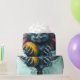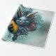 The spooky Easter rabbit, the horror in the Easter nest. A menacing, blue-grey rabbit, whose sharp teeth protrude from its mouth like small, white daggers and its bright green eyes sparkle eerily and illuminate the darkness around it. It almost seems as if the rabbit is proudly showing off its prey, the big Easter egg.