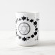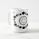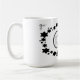 The Jewish Holiday Hanukkah. This black and white design features the "Star of David". Stars surround the Star of David in an oval shape. The corners are decorated with leaves and the Star of David. "Hanukkah 2014" is printed on the mug. These mugs are available in an assortment of styles, colours and sizes.