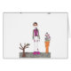 This is a creepy and cute design, the girl has button eyes and there are clouds on both ends of the sky. A stone zen garden, a bonzi tree and a vase with flowers round out the drawing.