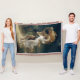 The Storm by Pierre Auguste Cot, oil on canvas 1880, is a French academic classical painting of two young people running to take shelter from a storm, brightly lit against a darkened forest landscape, a billowing piece of fabric shielding them against the rain. Cot combines a modern realism that borders on the photographic with inspiration from sources in classical antiquity, such as the shepherd costume from the ancient world and the girl’s diaphanous drapery. The Storm was commissioned as a type of companion piece to Cot’s other large painting of young lovers, Springtime, both of which became enormously famous in Europe and America.