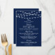Simple yet elegant, the string lights on navy blue wedding collection is a stunning design featuring lovely white hanging string lights on a navy blue background, which is perfect for any modern wedding celebration.