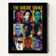 Colourful retro-style grid featuring The Suicide Squad characters: Captain Boomerang, Luna, Sol Soria, Blackguard, Amanda Waller, TDK, Savant, Mongal, and Suarez.