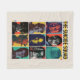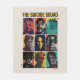 Colourful retro-style grid featuring The Suicide Squad members: Harley Quinn, Bloodsport, King Shark, Polka-Dot Man, Ratcatcher 2, Javelin, Peacemaker, The Thinker, and Colonel Rick Flag.