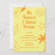 The Summer I Turned Sixteen sets the tone for a modern, minimalist sweet sixteen invitation in yellow and orange, with breezy brush script announcing a Beach Birthday Pool Party. Girly hand‑drawn doodles of seashells, a chic sun hat, starfish, a swaying palm tree, and a playful bikini frame the design, balancing whimsical charm with clean sophistication. The overall look is fresh, stylish, and celebratory — perfectly capturing the joy of a sun‑soaked milestone.