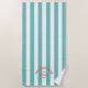 The Surf Club beach towel is perfect for the beach... turquoise cabana stripes with custom surf club crest. Personalise with the details of your surf trip... year and destination. Perfect for a club, family or friends surf trip or as a memento for a past trip. Matching accessories available in The Surf Club Cabana Stripe Collection.