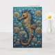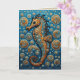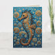 A little brown seahorse in a sea full of blue bubbles, as refreshing as a dip in the surf; an artificial-intelligence generation artwork. Inside is blank, to leave plenty of space for a message written by your own hand.