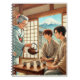 Two young Japanese men on a date in a Japanese tea house at the base of a Mt Fuji.
