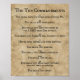 The Ten Commandments, a list of religious precepts that were divinely revealed to Moses and etched on two stone tablets, which are replicated here in a classic antique printing press style against a parchment backdrop.