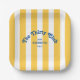 Elevate your 30th birthday celebration with The Thirty Club Yellow Cabana Stripe Party Paper Plates, featuring bold blue retro lettering set against vibrant yellow cabana stripes, these customisable plates are perfect for elevating your 30th birthday decor, adding a fun, coastal vibe these plates can be fully personalised with your milestone year and destination. Whether you're hosting a beach bash, poolside gathering, or chic destination party, these paper plates bring personality and charm to every table.