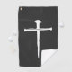 Simple design: three white nails interlaced to make the Christian Cross. Personalise with your name.