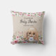 The Throw Pillow for a baby shower features adorable watercolor roses and a cute stuffed bunny.