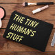 Introducing "The Tiny Human's Stuff" Black & Yellow Script Accessory Pouch, a stylish and practical solution for organising your little one's essentials. With its sleek black design and eye-catching yellow script, this pouch adds a touch of fun to everyday parenting tasks. Perfect for storing diapers, wipes, pacifiers, and other baby essentials, it keeps everything tidy and easily accessible while on the go. Stay organised in style with this adorable accessory pouch designed with both parents and their tiny humans in mind.