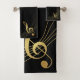 Gold Music Notes Towels - The Treble Clef: - Music Notes Golden Decor. Metallic Gold and black bath towel set. Golden music note themed. Perfect gift for those that love music, You can create your own background colors to match your home decor or music themes bathroom. Items can be purchased seperately, music notes wash cloths, hand towels or bath towels as well as a set.