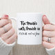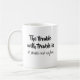 Overall, a ceramic coffee mug with a funny saying about trouble is a great way to add some personality to your coffee routine and put a smile on your face. It would also make a great gift for a friend or family member who loves coffee and has a good sense of humor.