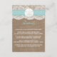 The rustic sand dollar beach wedding collection is a stunning design featuring a lovely rustic burlap effect background with a romantic vintage white lace effect trim finished with a stunning sand dollar and turquoise ribbon. These Detail Cards can be personalised for your special occasion and would make the perfect matching insert for a wedding suite, bridal shower, engagement party, birthday party and much, much more. These cards can be used to create Detail Cards, Guest Information Cards, Accommodation Cards, Direction Cards, Gift Registry or Wishing Well Cards as well as Ceremony and Reception Cards. Matching wedding items can be found in the collection.