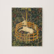 Puzzle featuring the mediaeval tapestry The Unicorn in Captivity (1495-1505). The seventh tapestry in The Unicorn Tapestries—also known as The Unicorn Rests in a Garden—shows a white unicorn with a blue collar sitting inside a fence. Green grass and beautiful flowers surround the unicorn. A fantastic gift for mediaeval art collectors and fantasy lovers!