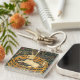 Keychain featuring the mediaeval tapestry The Unicorn in Captivity (1495-1505). The seventh tapestry in The Unicorn Tapestries—also known as The Unicorn Rests in a Garden—shows a white unicorn with a blue collar sitting inside a fence. Green grass and beautiful flowers surround the unicorn. A fantastic gift for mediaeval art collectors and fantasy lovers!