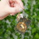 Keychain featuring the mediaeval tapestry The Unicorn in Captivity (1495-1505). The seventh tapestry in The Unicorn Tapestries—also known as The Unicorn Rests in a Garden—shows a white unicorn with a blue collar sitting inside a fence. Green grass and beautiful flowers surround the unicorn. A fantastic gift for mediaeval art collectors and fantasy lovers!