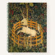 Notebook featuring the mediaeval tapestry The Unicorn in Captivity (1495-1505). The seventh tapestry in The Unicorn Tapestries—also known as The Unicorn Rests in a Garden—shows a white unicorn with a blue collar sitting inside a fence. Green grass and beautiful flowers surround the unicorn. A fantastic gift for mediaeval art collectors and fantasy lovers!