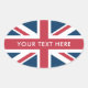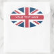 Oval sticker with The Union Jack flag design. This United Kingdom flag design is a great way to show you are proud to be British.