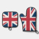 Oven mitt & pot holder Set with The Union Jack flag design. This United Kingdom flag design is a great way to show you are proud to be British.