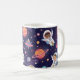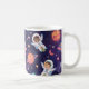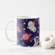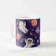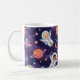 A vibrant, playful, and seamless pattern illustrating a diverse group of cute, cartoon astronauts floating joyfully in outer space.