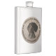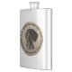 The product is a good size and came exactly as it was pictured. The lid is not attached to the flask, which could be dangerous on drunken nights... The print came out surprisingly well and looks very sharp. Would definitely recommend.