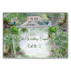 Breathe in the scents of tropical flourishing plant greenery and feel the slightly damp warm climate temperature. Embrace the “peas and quiet” amongst trickling water where happy birds and butterflies made their home number and name cards for each table