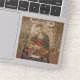 This beautiful painting is based on The Virgin Adoring the Christ Child with Two Saints (La Virgin adorando al Niño Jesús con dos santos) by Unidentified artist. Original public domain image from Los Angeles County Museum of Art. The artwork features a crowned Virgin Mary, with a serene expression and hands clasped in prayer. She is dressed in rich robes with intricate patterns, surrounded by radiant golden lines. Below her rests a sleeping baby Jesus, surrounded by a blanket with detailed designs. Two holy men are positioned beneath, the sacred heart between them. The background is filled with floral motifs and cherubs within clouds.