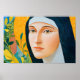 This colourful poster of Saint Hildegard of Bingen reflects her wisdom, creativity, and faith. Surrounded by rich natural imagery, her gaze inspires thought and prayer. A perfect addition for homes, schools, or parish spaces, this artwork celebrates the life of a saint known for her vision, music, and teaching.